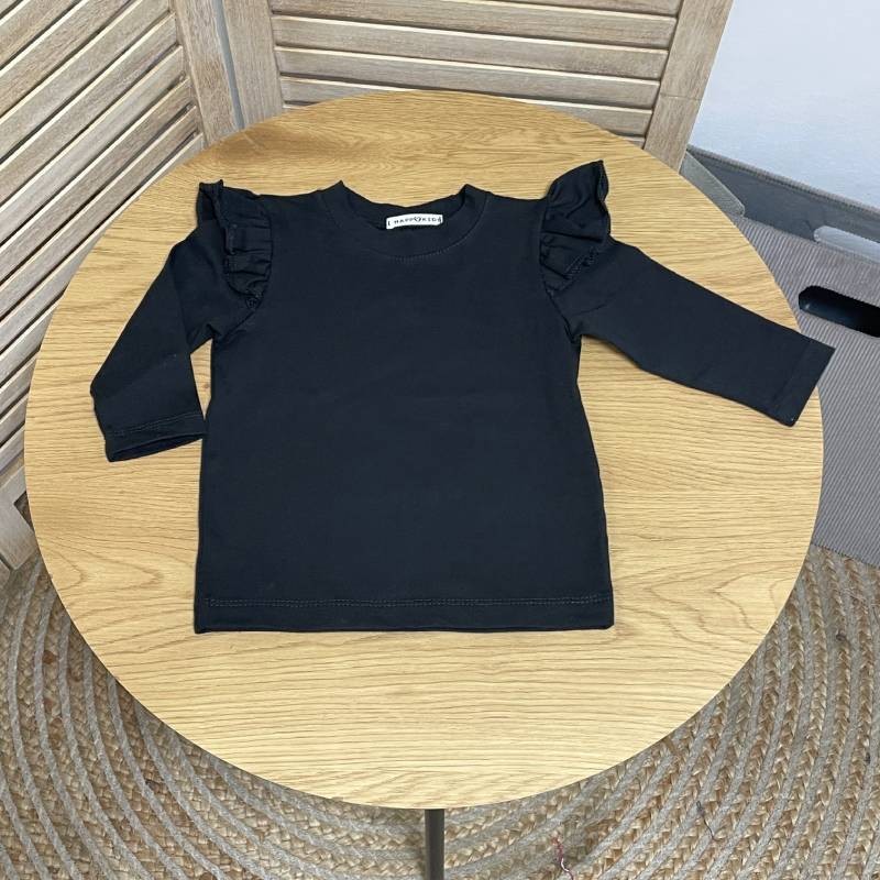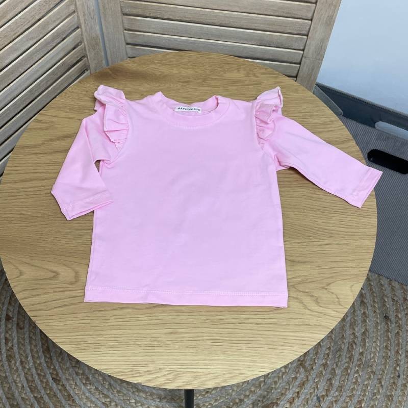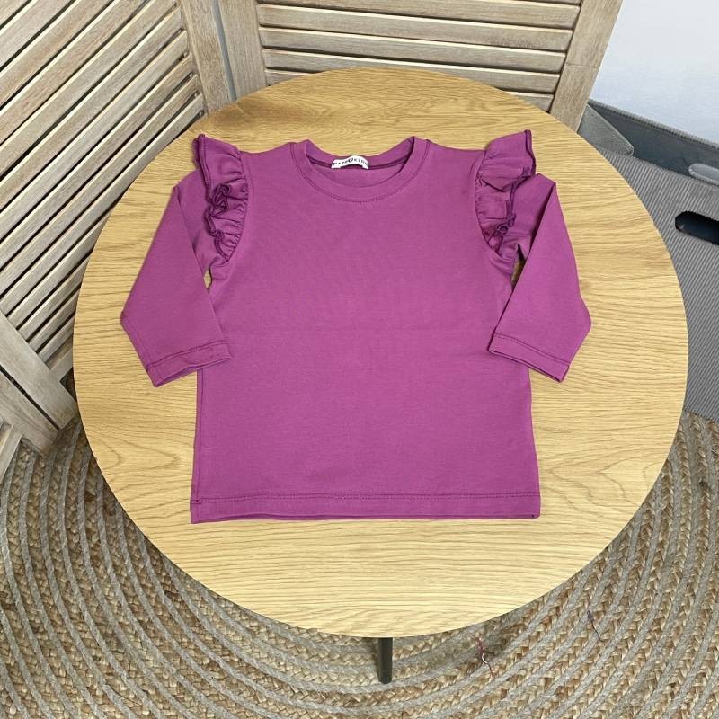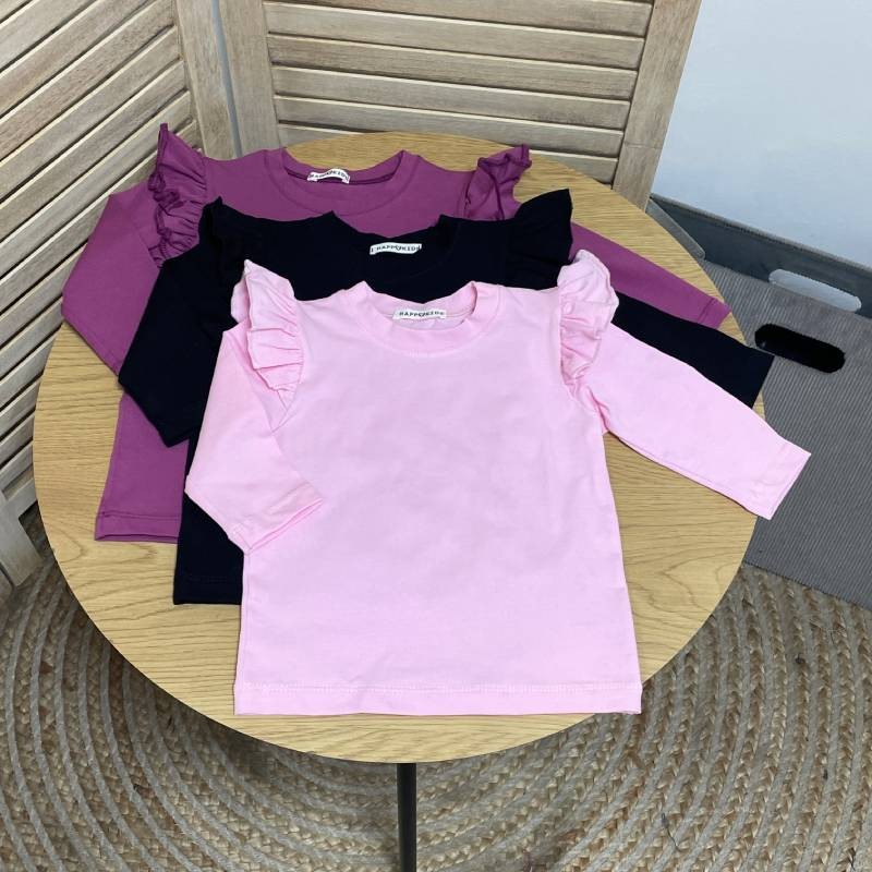 Базовий лонгслів для дівчинки з крильцями – стильна й зручна річ, що поєднує комфорт і ніжний дизайн. Модель з довгим рукавом доповнена милими воланами на плечиках, які створюють ефект крилець та роблять образ маленької модниці святковим навіть у буденному вбранні.