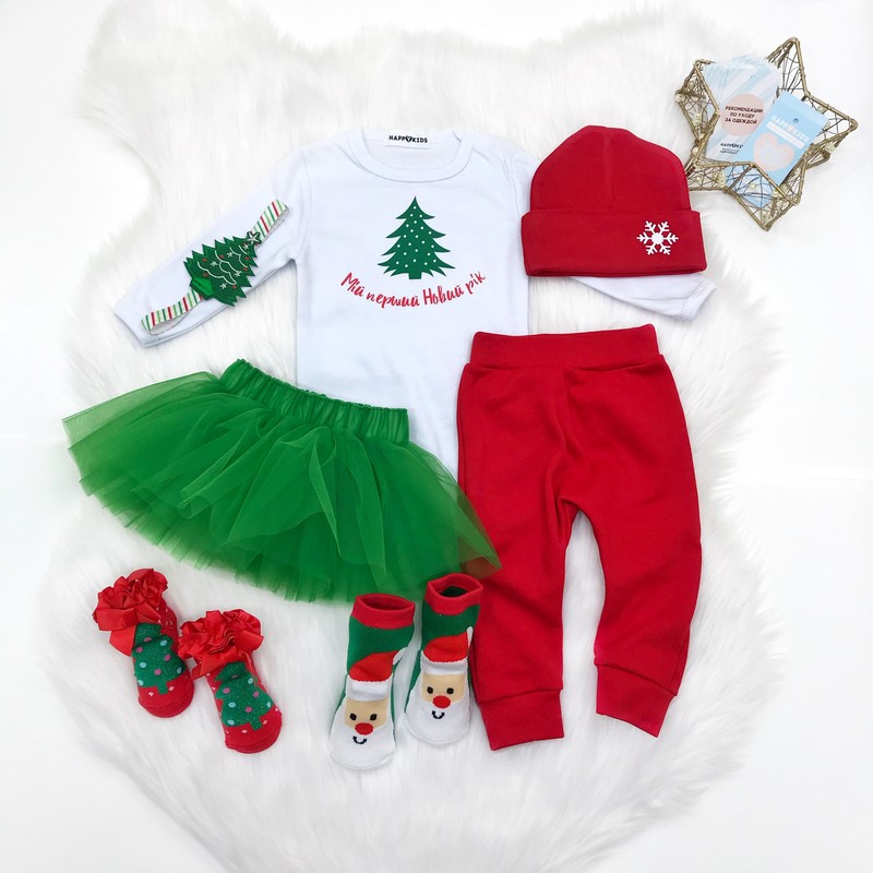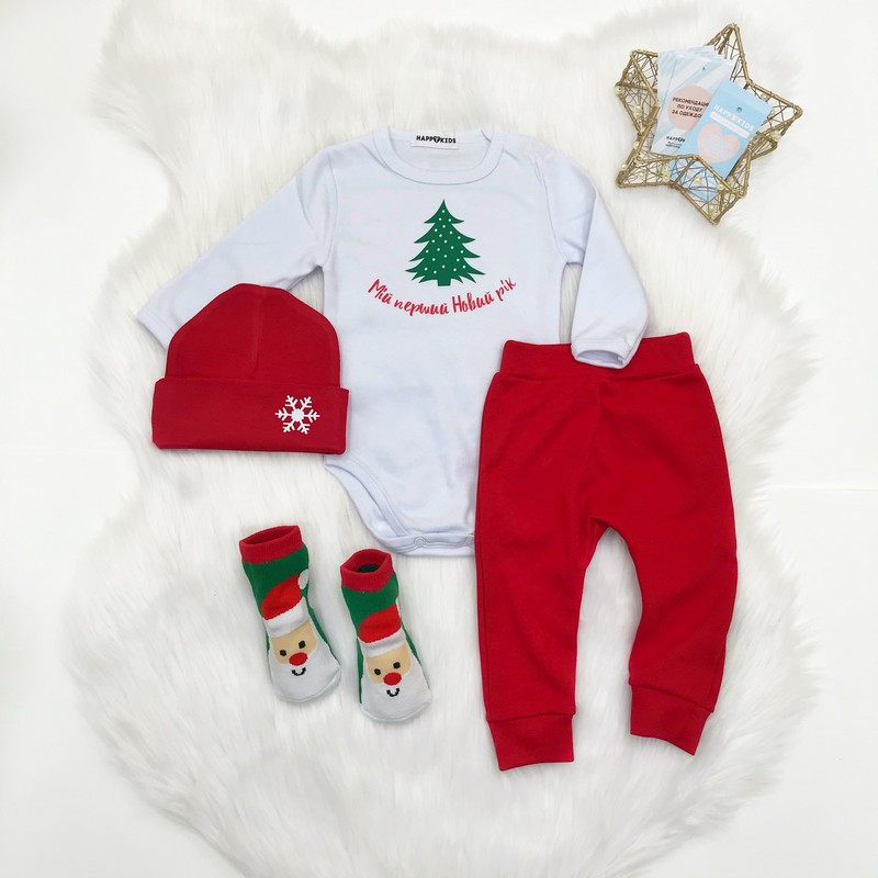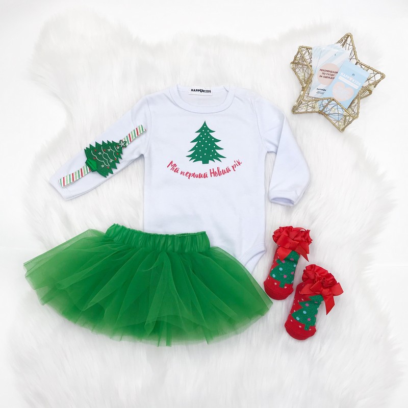 Нарядний універсальний боді підійде хлопчику та дівчинці. Доповнюй будь-якими аксесуарами на свій смак і створюй свій неповторний новорічний образ.