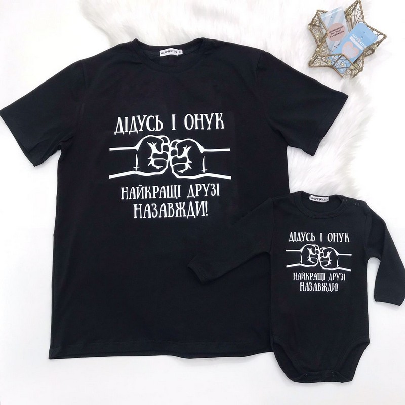 Доповнюй дитячий бодік з написом стильними аксесуарами, що ідеально поєднуються між собою! Також можна купити футболку для діда з написом - дідусь і онук - найеращі друзі назавжди!