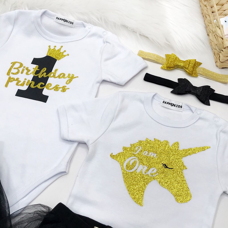 Оригінальний боді для маленької принцеси з блискучим написом на перший день народження стане оригінальним та стильним на день народження донечки, ідеально пасує для домашньої фотосесії та святкувань.