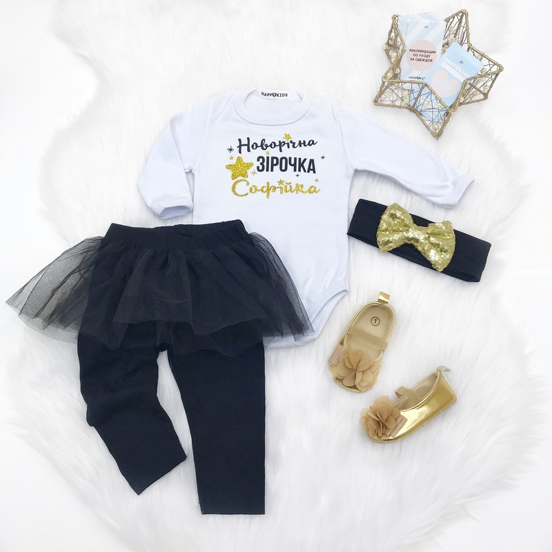 Нарядний універсальний боді підійде на новий рік новонародженій дівчинці або дитині до року. Доповнюй будь-якими аксесуарами на свій смак і створювай свій неповторний новорічний образ.