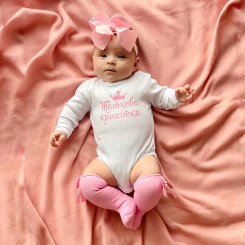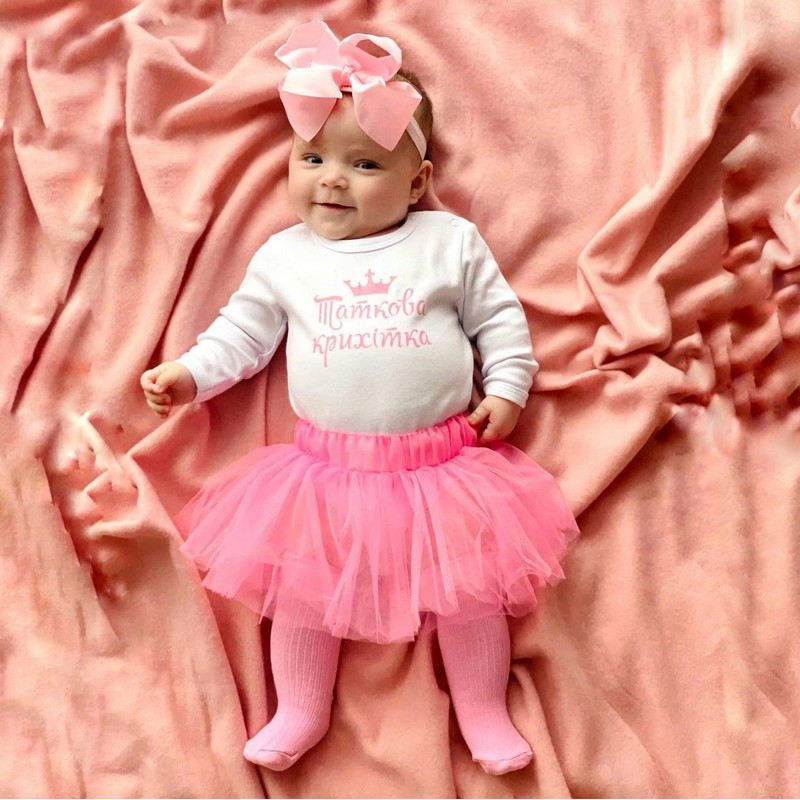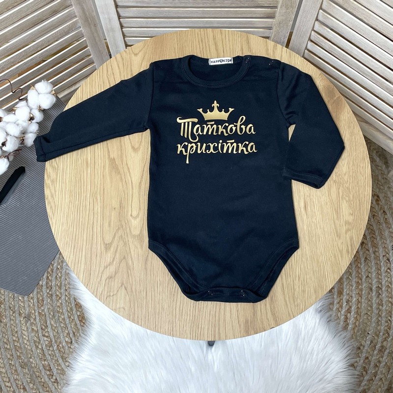 Оригінальний боді для маленької принцеси з оригінальним написом про татка - можна придбати на подарунок як новонародженій дівчинці так і надень народження, як оригінальний подарунок на день народження татка.