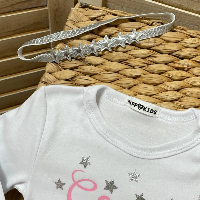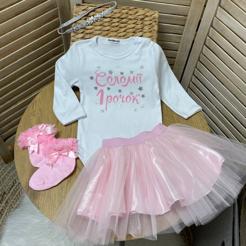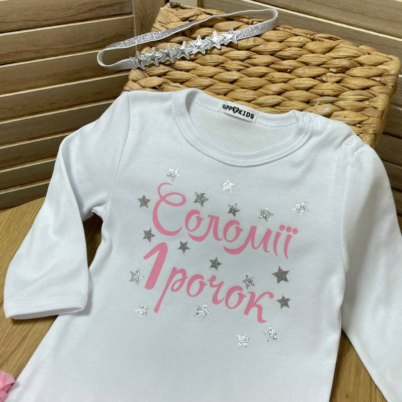 Пропонуємо іменний боді для дівчинки на 1 рочок зі зірками, яке неодмінно стане найяскравішою частиною святкового гардеробу вашої малечі!