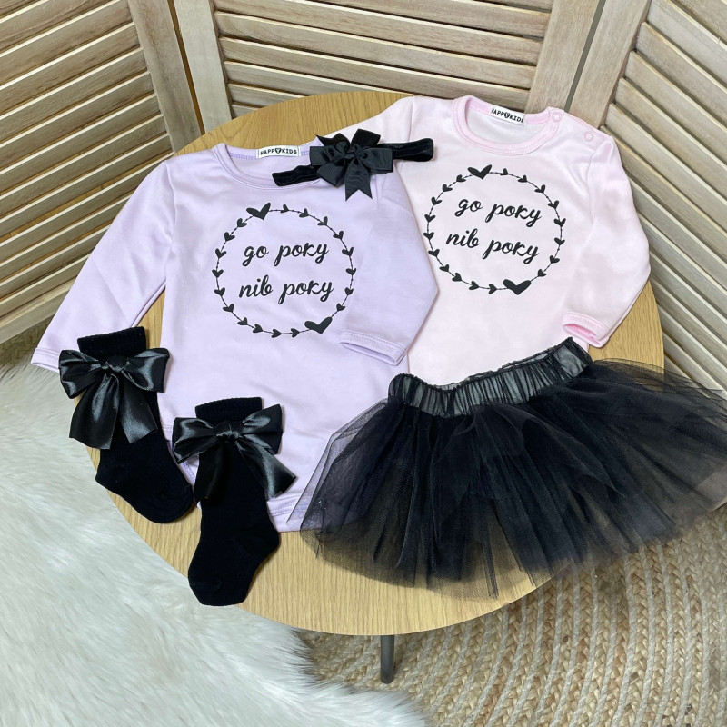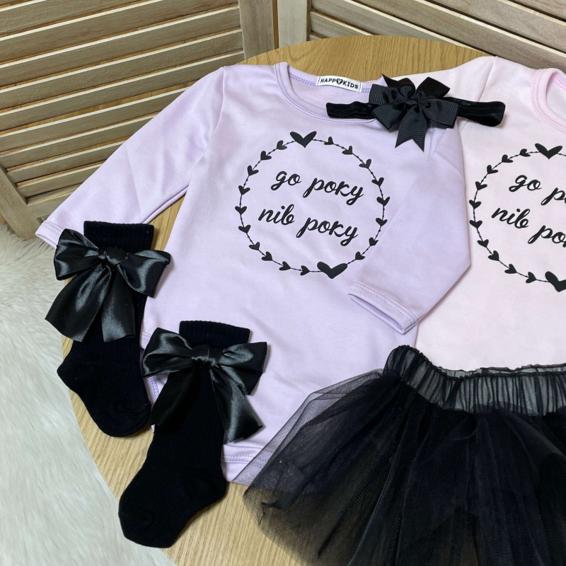 Розміри: Комплект доступний у різних розмірах, щоб ідеально підійти до росту та розміру вашої малечі. Нехай ваша дівчинка насолоджується комфортом та веселим виглядом у нашому чарівному боді з прикольним написом!