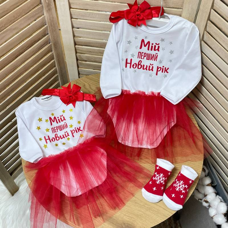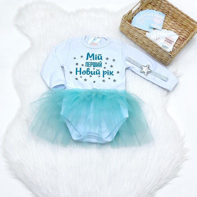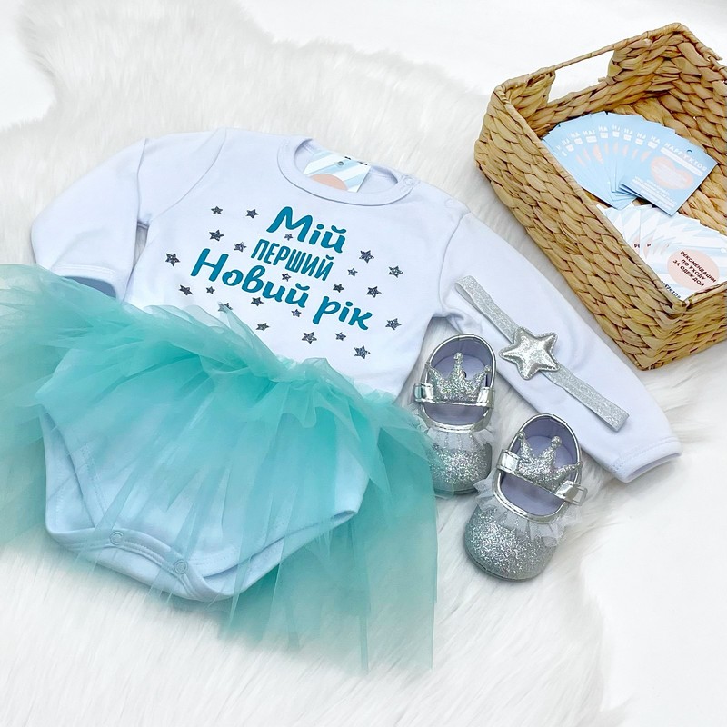 Ваша маленька красуня зустрічатиме свій перший у житті Новий рік? Вітаємо! У такому разі, їй обов'язково знадобиться боді з фатином. Яке має символічний напис і при цьому виглядає дуже жіночно. Саме те, що потрібне юній принцесі!