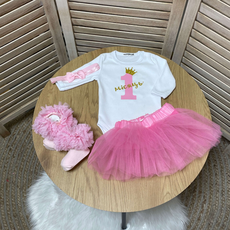 Боді для дівчинки по місяцям цифра з короною глітер