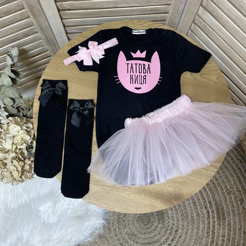 Якісний бодік для дівчинки з оригінальним написом Таткова киця - прекрасний на свято чи фотосесію. Такж незвичайний подарунок га день народження тата.