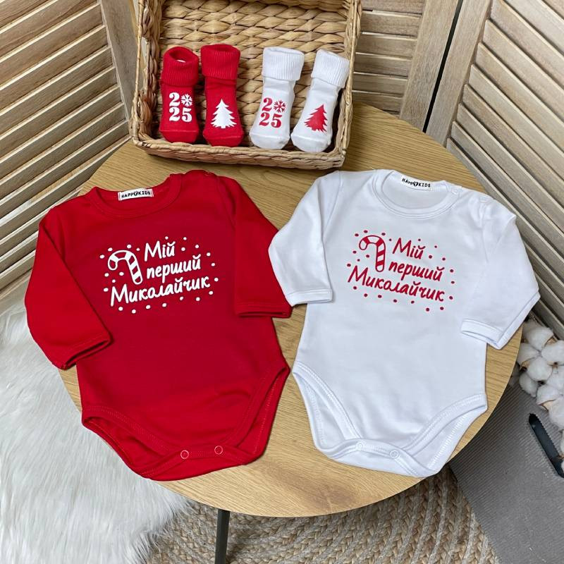 Спеціальне Святкове Боді для хлопчика або дівчинки: "Мій перший Миколайчик" Відзначте перше свято Святого Миколая разом із вашою малечею, обравши найцікавіший та найсвятковіший подарунок - боді "Мій перший Миколайчик". Цей унікальний товар створений, щоб надати вашому малюку особливий шарм та святковий настрій.