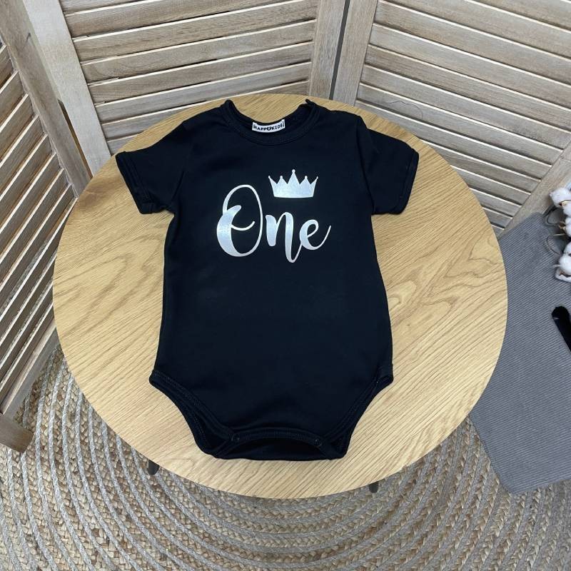 Наш боді для хлопчика на 1 рік з короною – ідеальне рішення для першого дня народження! М'який, зручний і неймовірно милий – він створений для важливої події у житті вашої дитини. Яскравий акцент – корона принца додає образу урочистості та святковості.