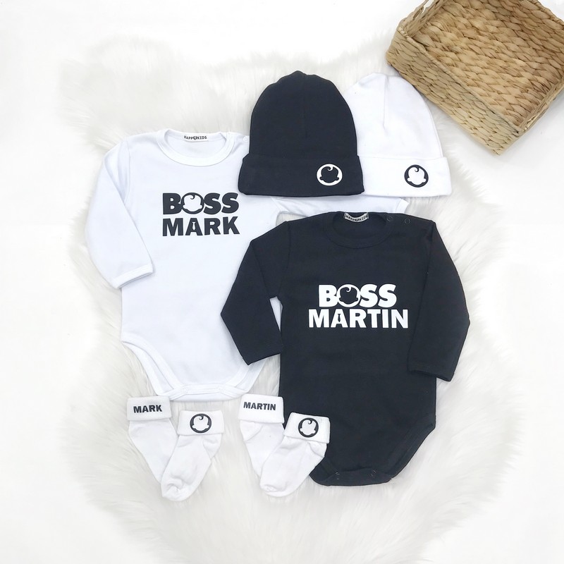 Якісні бодік для хлопчика з оригінальним написом - прекрасний вибір на перший день народження, а так само підійде на свято чи фотосесію.