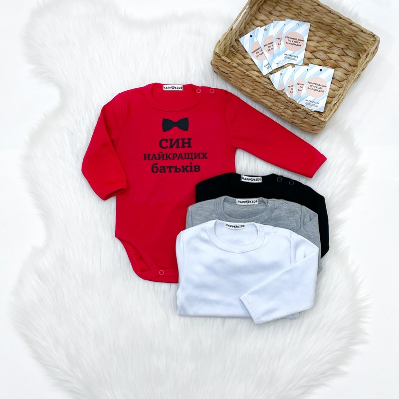 Якісний бодік для хлопчика з оригінальним написом - прекрасний на свято чи фотосесію.