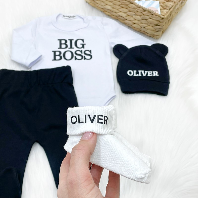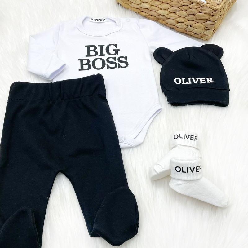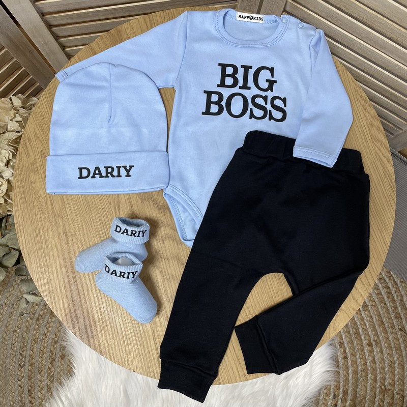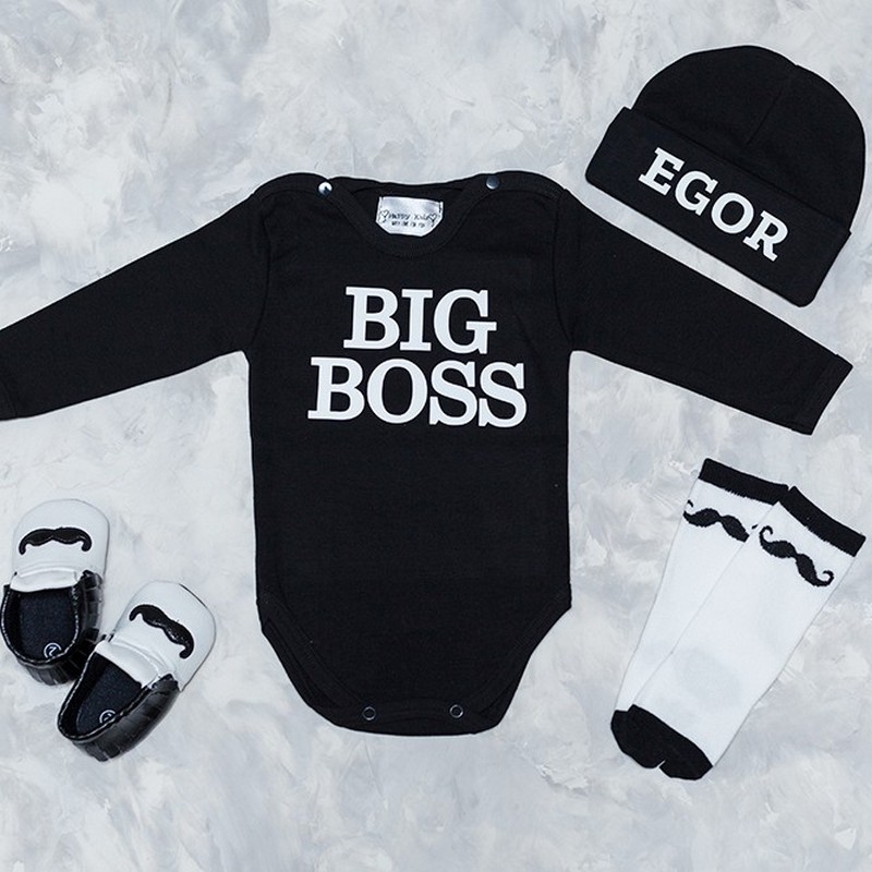 Стильний базовий боді із завжди актуальним написом БІГ БОС сподобається малюку і всім оточуючим.
