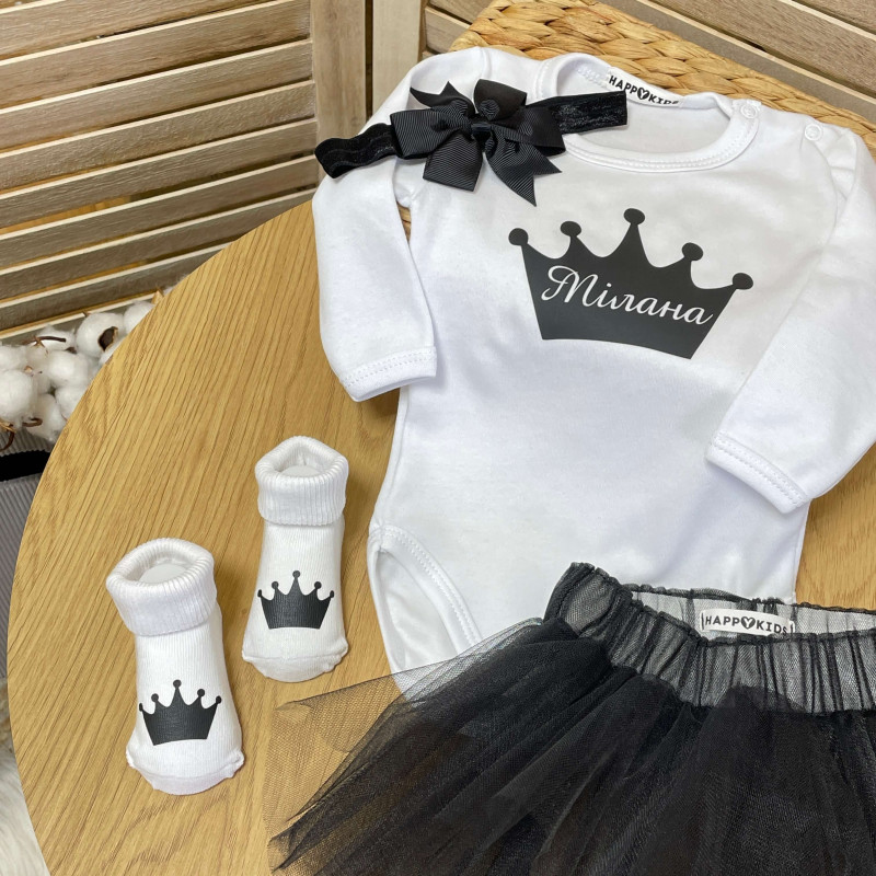 Боді для новонародженого з короною та іменем - це чудовий подарунок для малюка та його батьків. Виготовлений з м'якого та приємного на дотик матеріалу - 100% бавовни, що забезпечує комфорт малюку під час носіння.