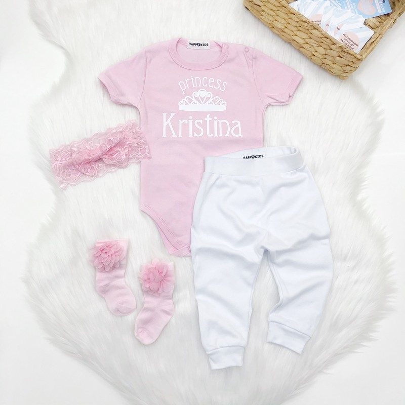 Оригінальний боді для маленької принцеси з власним ім'ям - можна придбати на подарунок як новонародженій дівчинці так і на перший день народження донечки