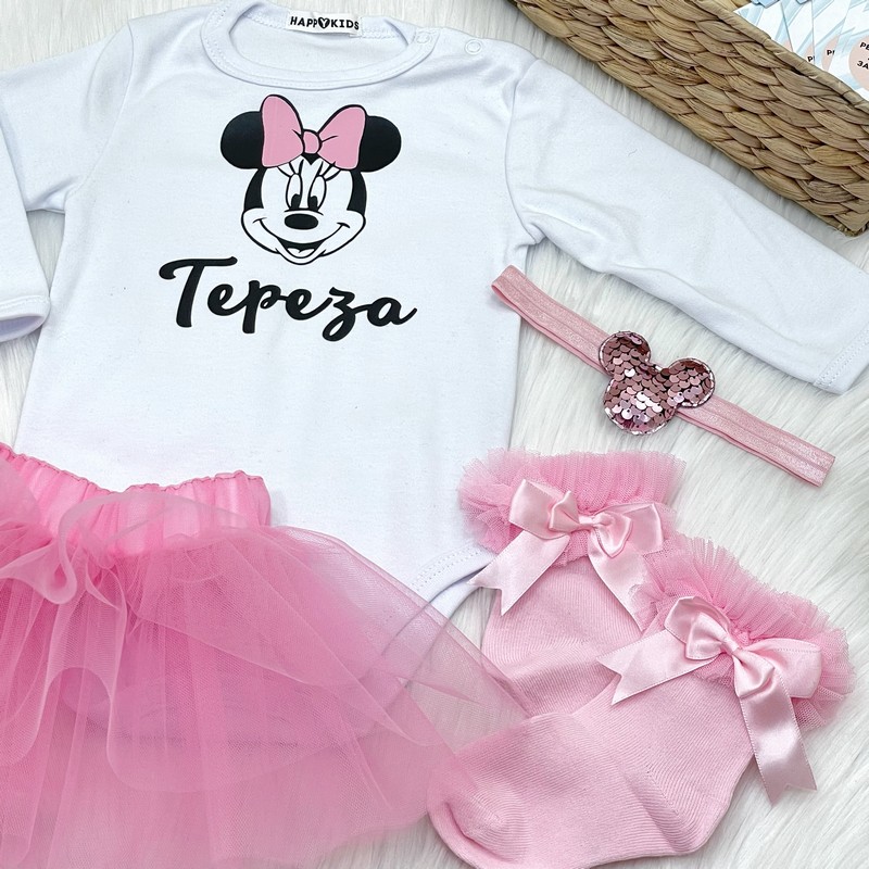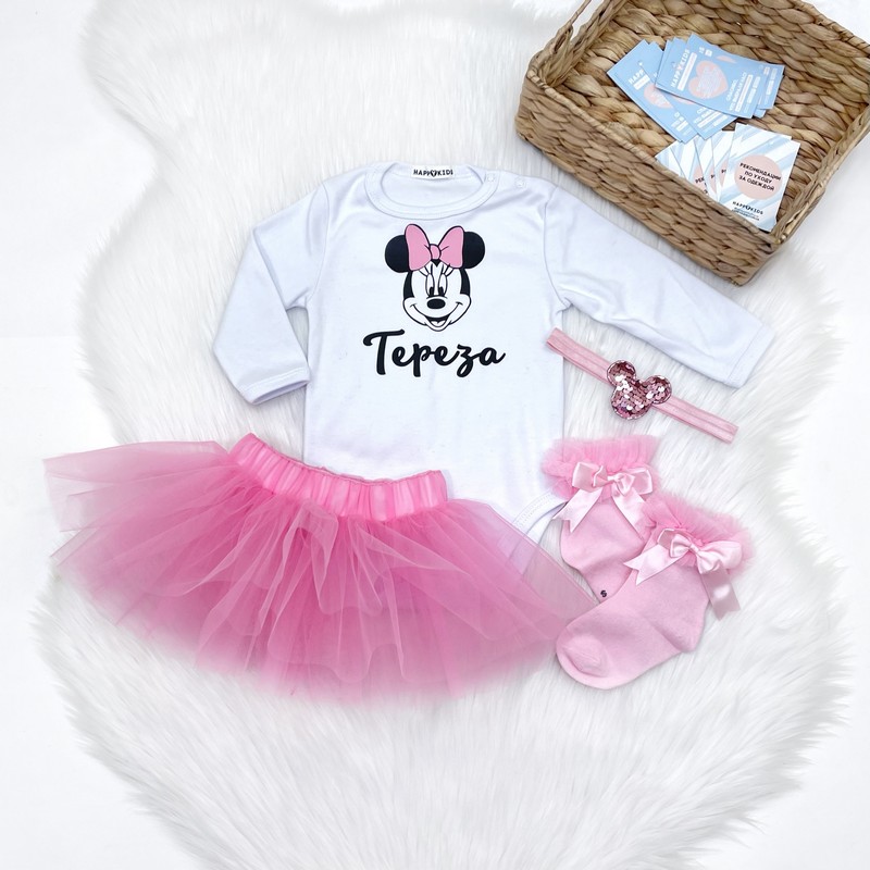 Боди з принтом для дівчинки з власним іменем і милою Мінні - ідеальний вибір для маленької принцеси