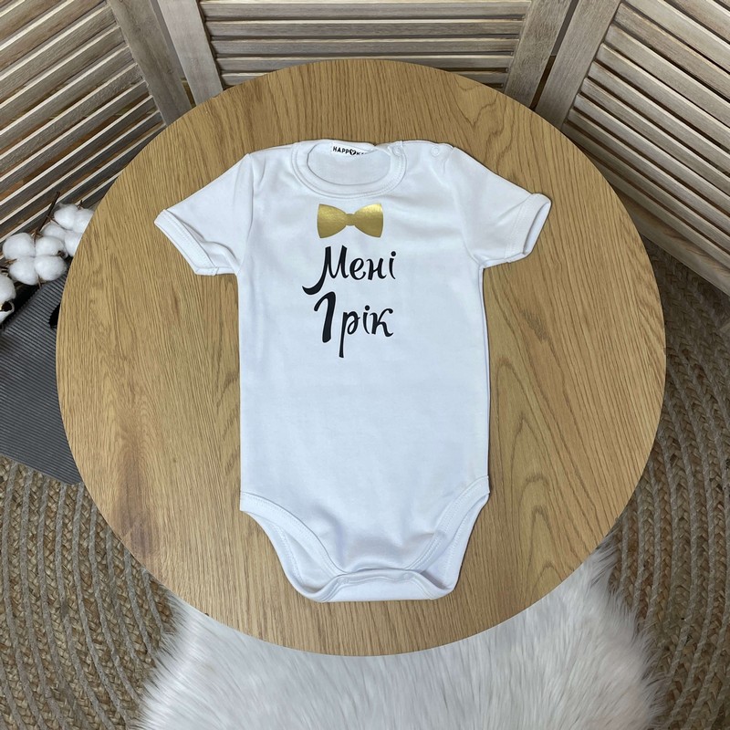 Білий боді для хлопчика з написом "Мені 1 рік" та миленьким метеликом. Боді зроблено з м'якого та дихаючого матеріалу, що забезпечує комфорт малюку протягом усього дня.