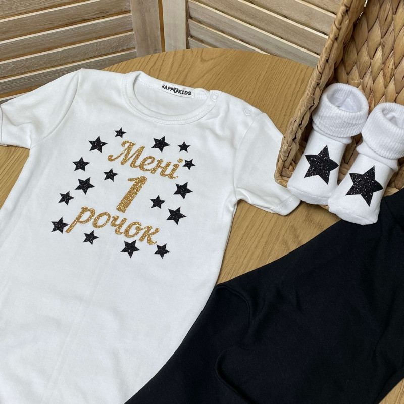 Боді на перший день народження "Мені 1 рочок" з зірками глітер