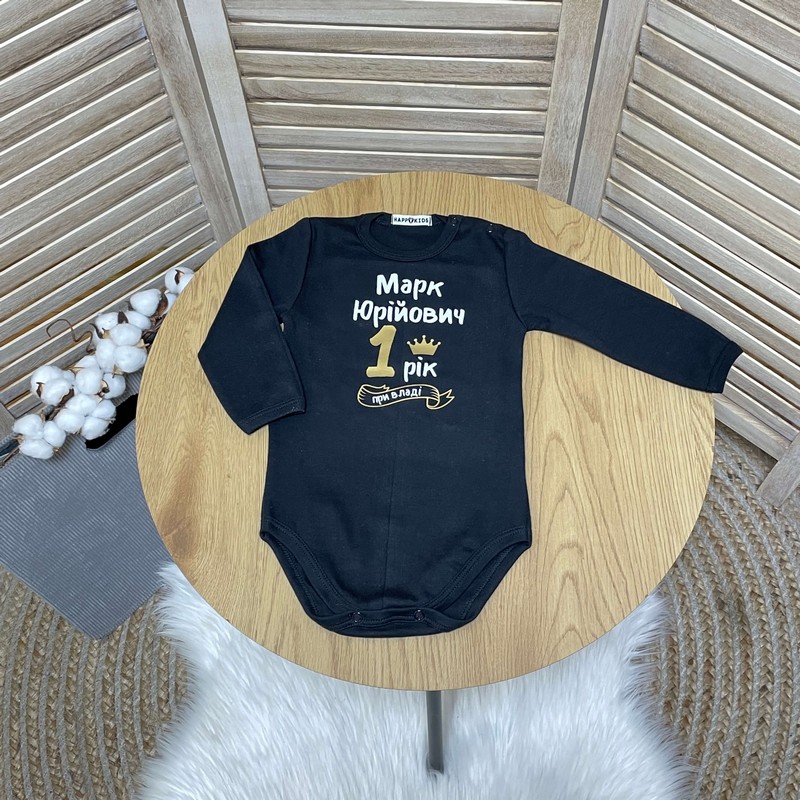 Боді на перший день народження "Рік при владі" з ім'ям по-батькові білий
