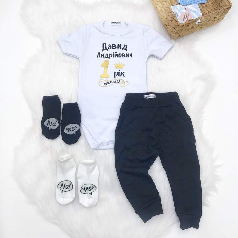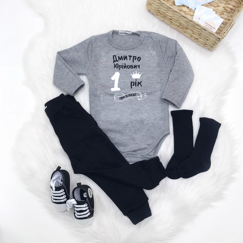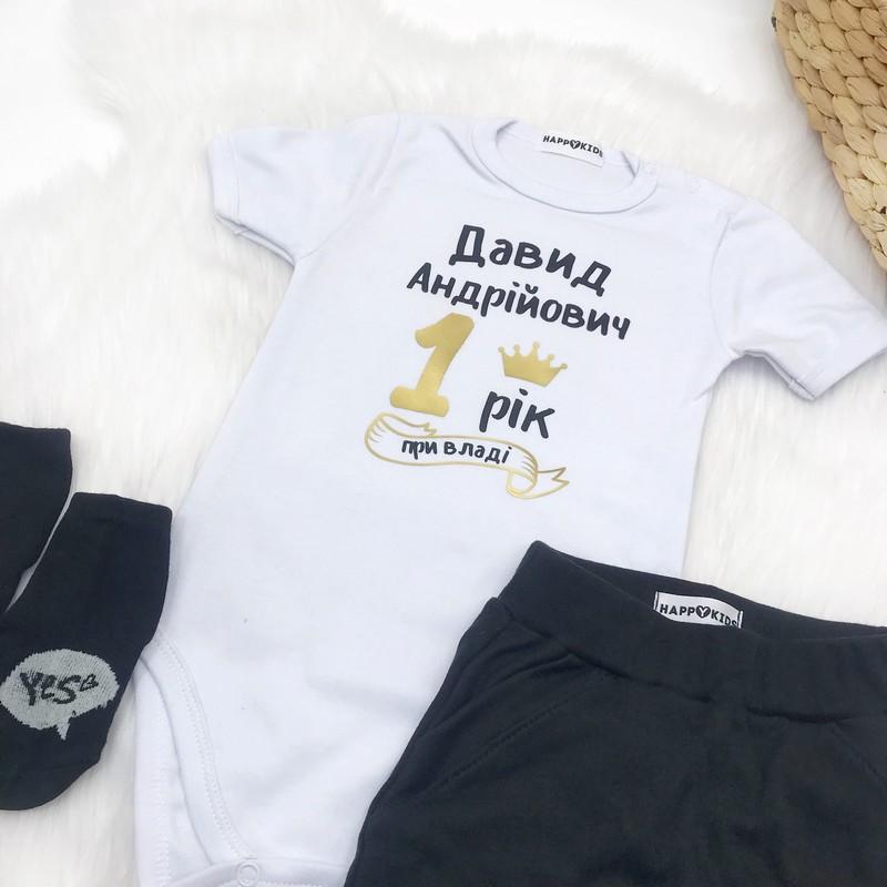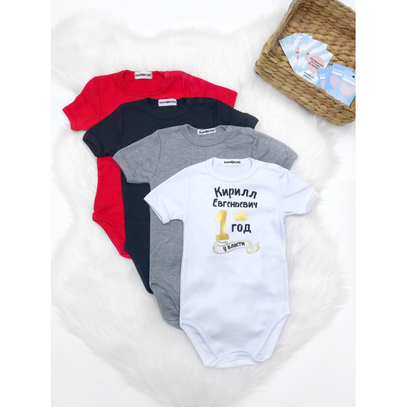 Боді на перший день народження "Рік при владі" з ім'ям по-батькові чорний