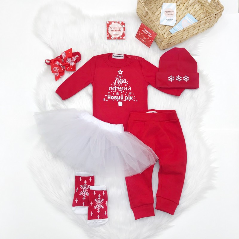 Особливої урочистості вбранню надає напис українською мовою, розташований у вигляді ялинки. Боді виконано з високоякісної, 100% бавовни, приємно до тіла, та не дратує ніжну шкіру малюка, або малючки.