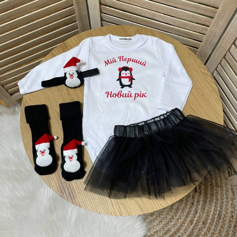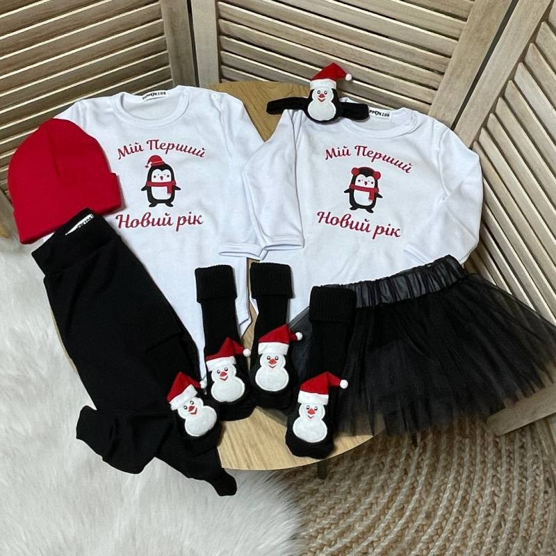 Боді новорічний для з написом "Мій Перший Новий Рік" та веселим малюнком пінгвіна - ідеальний вибір для вашої малечі цього святкового сезону.