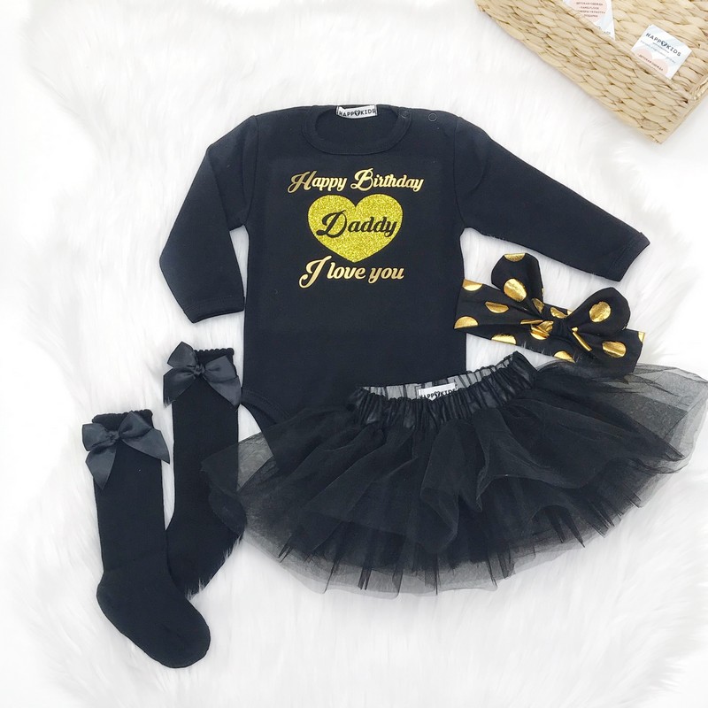Боді-вітання "Happy birthday Daddy" серце гліттер