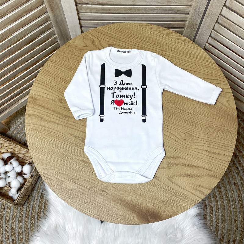 Боді привітання "З Днем народження, Татку" підтяжки з метеликом