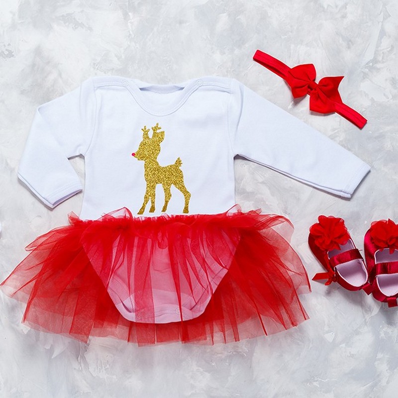 Нарядний універсальний боді підійде на новий рік новонародженій дівчинці або дитині до року. Доповнюй будь-якими аксесуарами на свій смак і створювай свій неповторний новорічний образ.