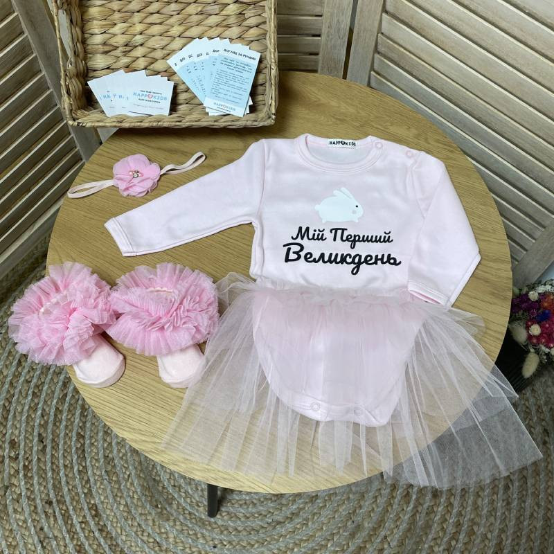 Боді-сукня дівчинці з зайчиком Мій перший Великдень