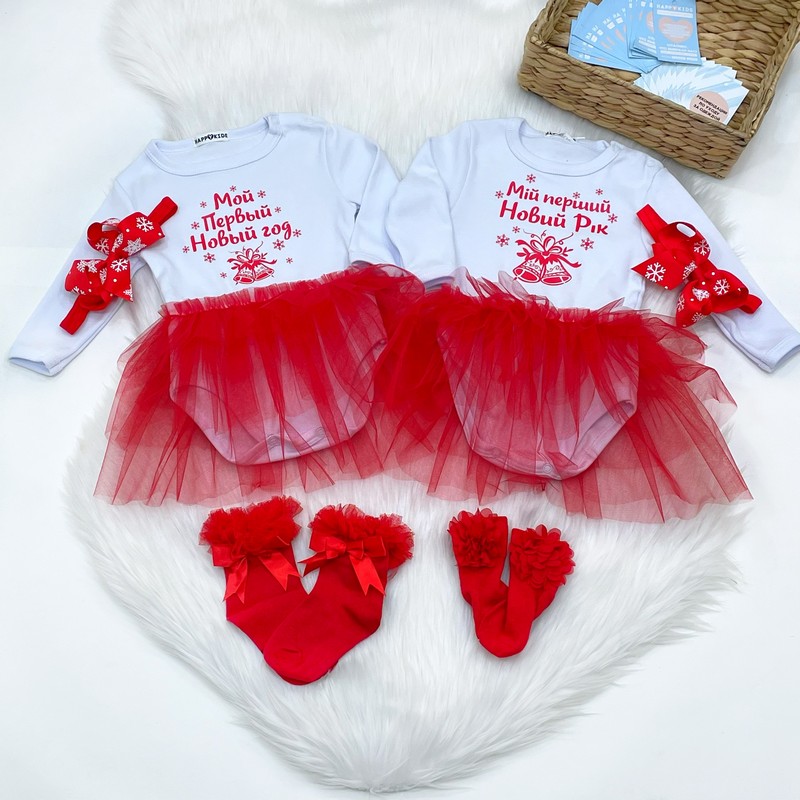 Нарядний універсальний новорічний боді для дівчинки підійде новородженій дівчинці або дитині до року. Доповнюй будь-якими аксесуарами на свій смак і створюй свій неповторний новорічний образ.