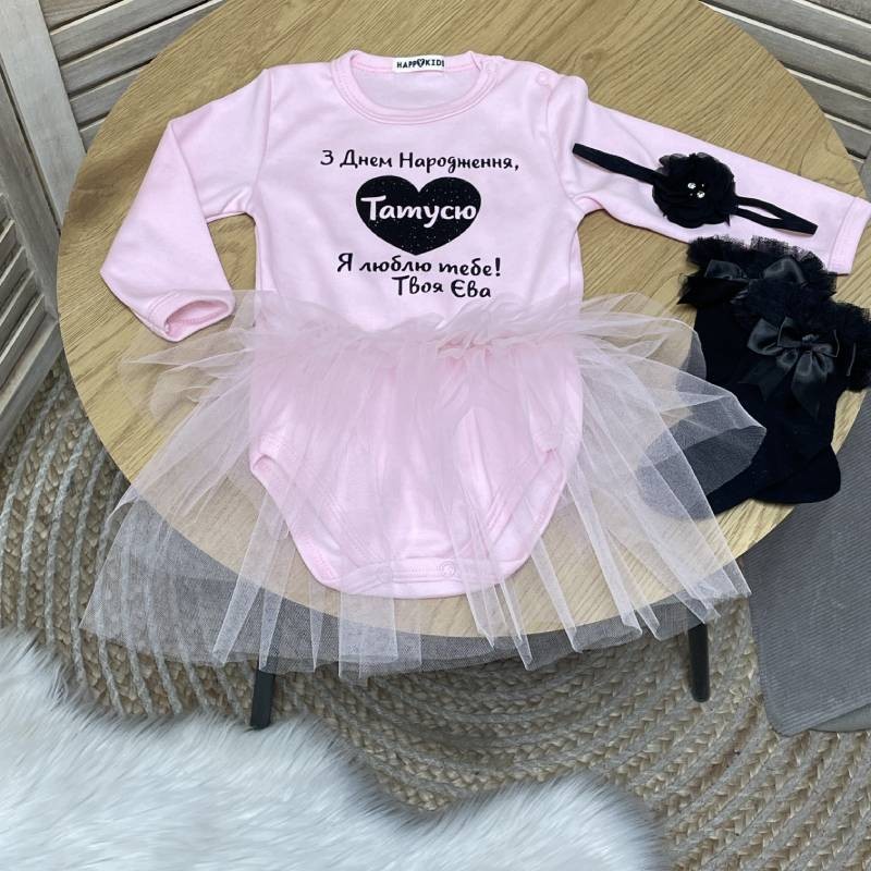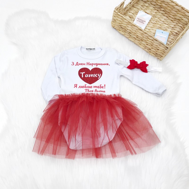 Боді-сукня з привітанням тату "З Днем народження, Татусю" серце гліттер