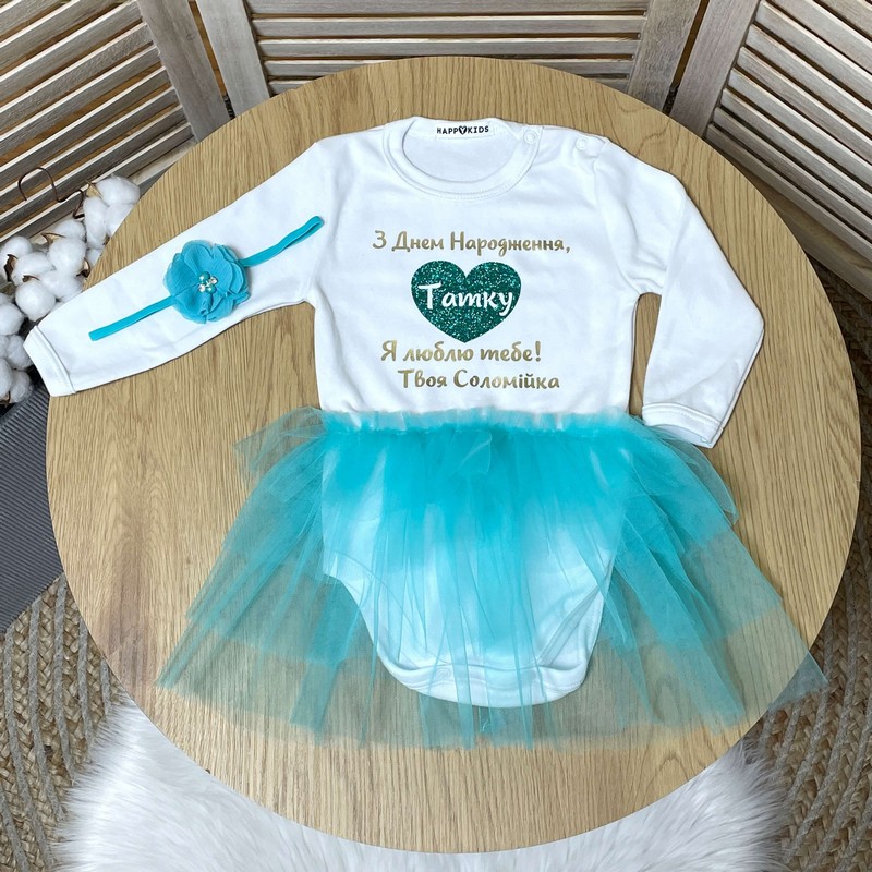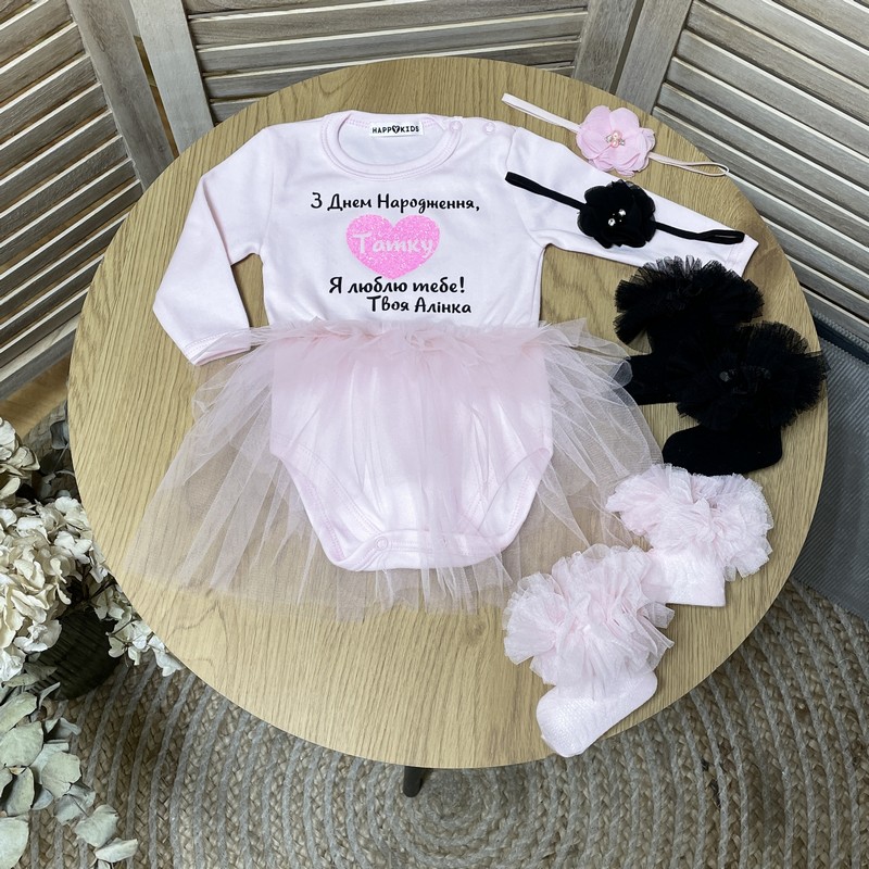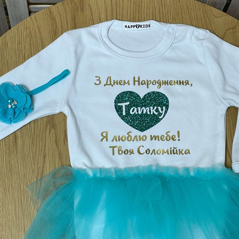 Боді-сукня з привітанням "З Днем народження, Татусю" в серці глітер