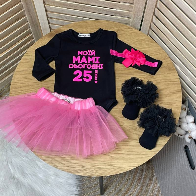 Боді-вітання з написом "Моїй мамі сьогодні 25 років"