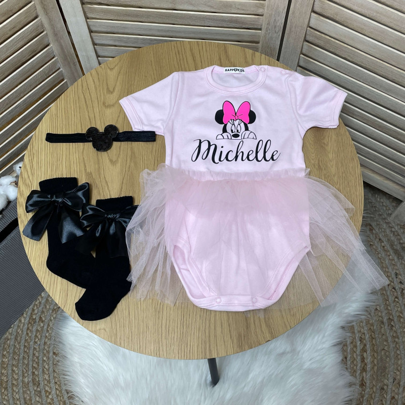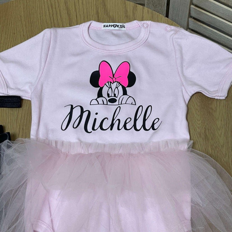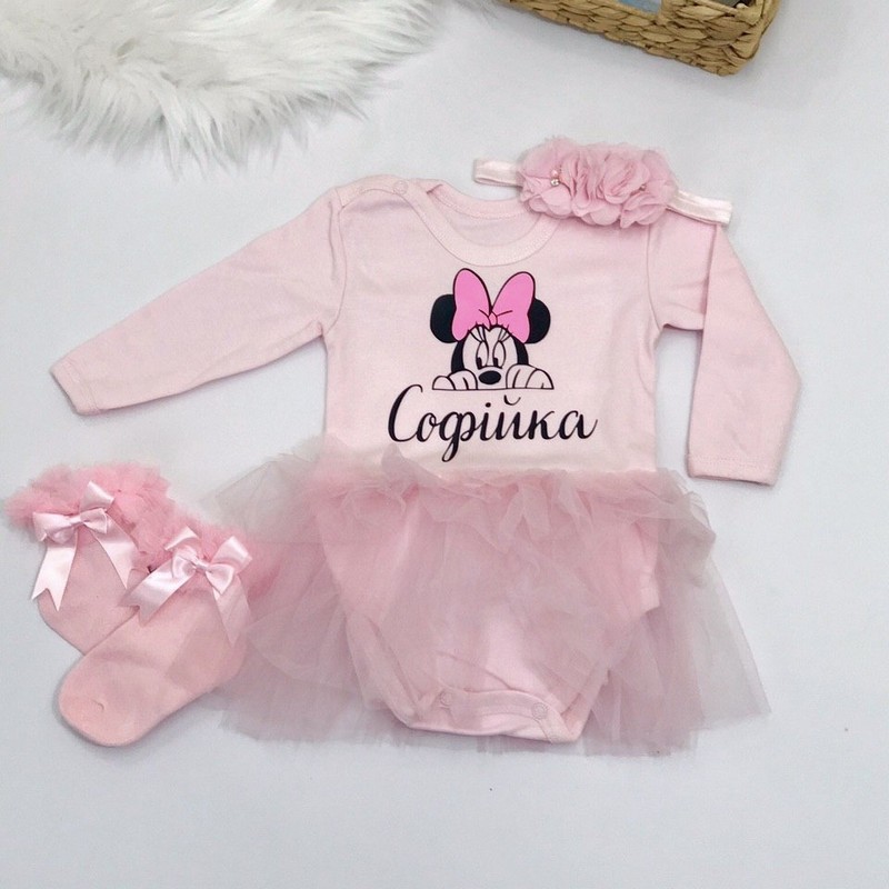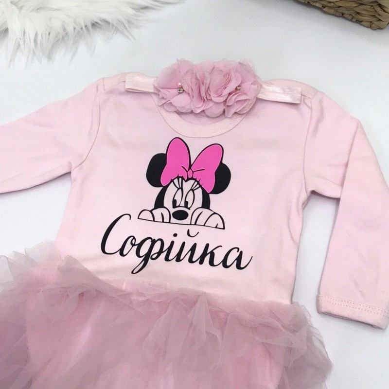 Оригінальний боді для маленької принцеси з іменем і Мінні маус - можна придбати на подарунок як новонародженій дівчинці так і на перший день народження донечки