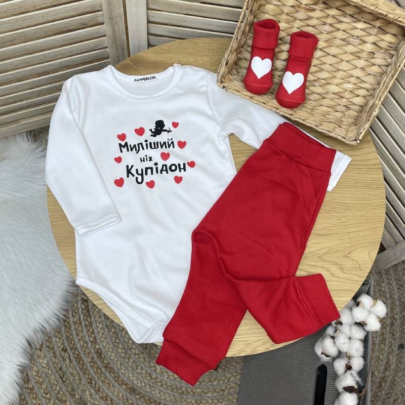 Шукаєте ідеальний наряд для свого маленького янголятка? Боді з написом "Миліший ніж Купідон" стане чудовим вибором для особливих моментів! Милий дизайн, ніжна тканина та зручний крій зроблять його улюбленим елементом гардероба вашого малюка.