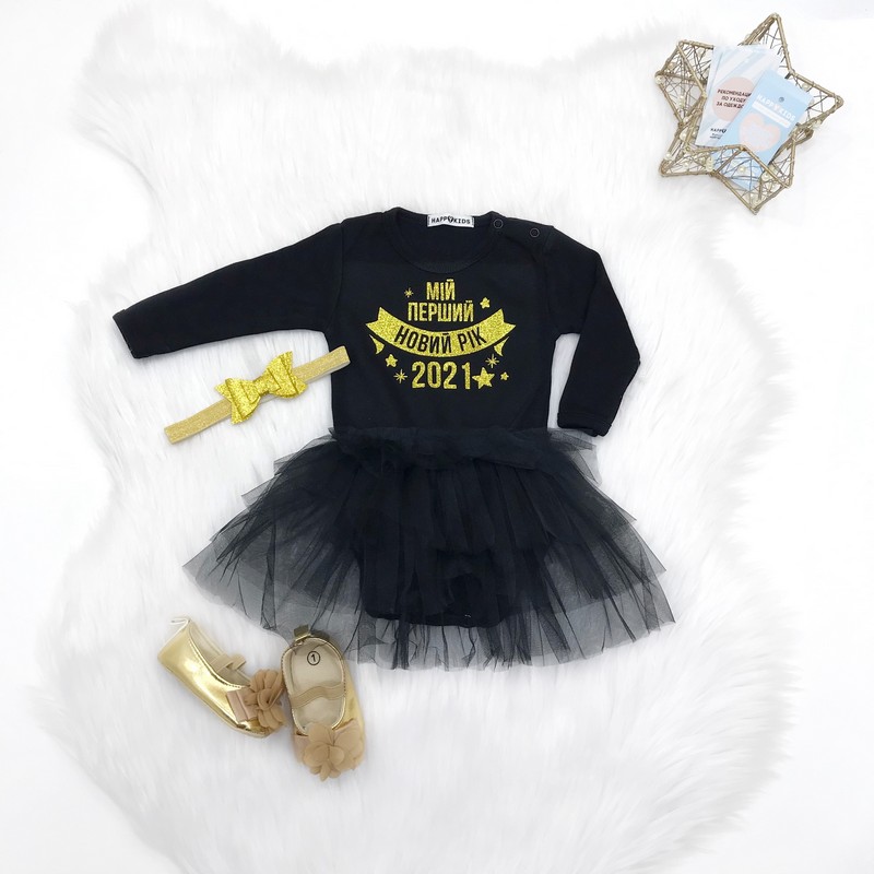 Боді зі спідничкою гліттер "Мій перший Новий рік" емблема