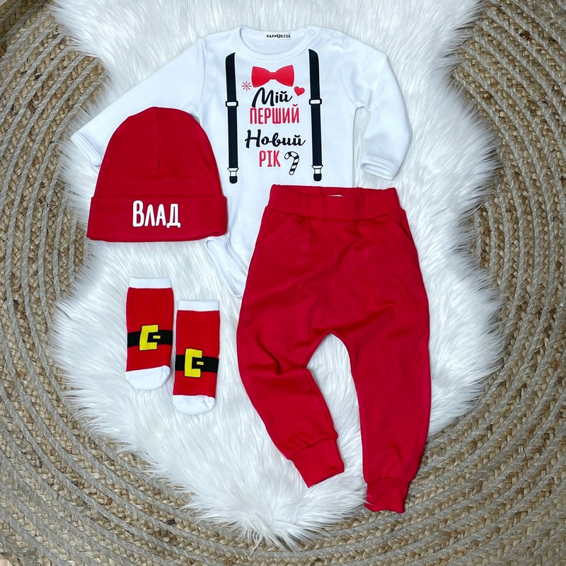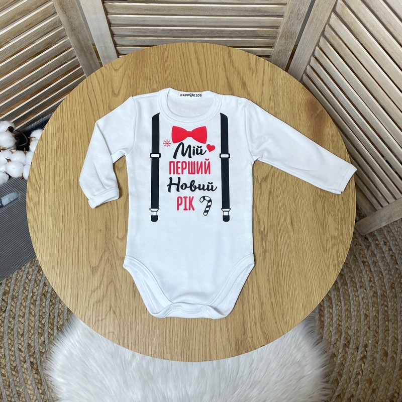 Святковий універсальний боді підійде хлопчику на перший Новий рік. Доповнюй будь-якими аксесуарами на свій смак та створювай свій неповторний новорічний образ.