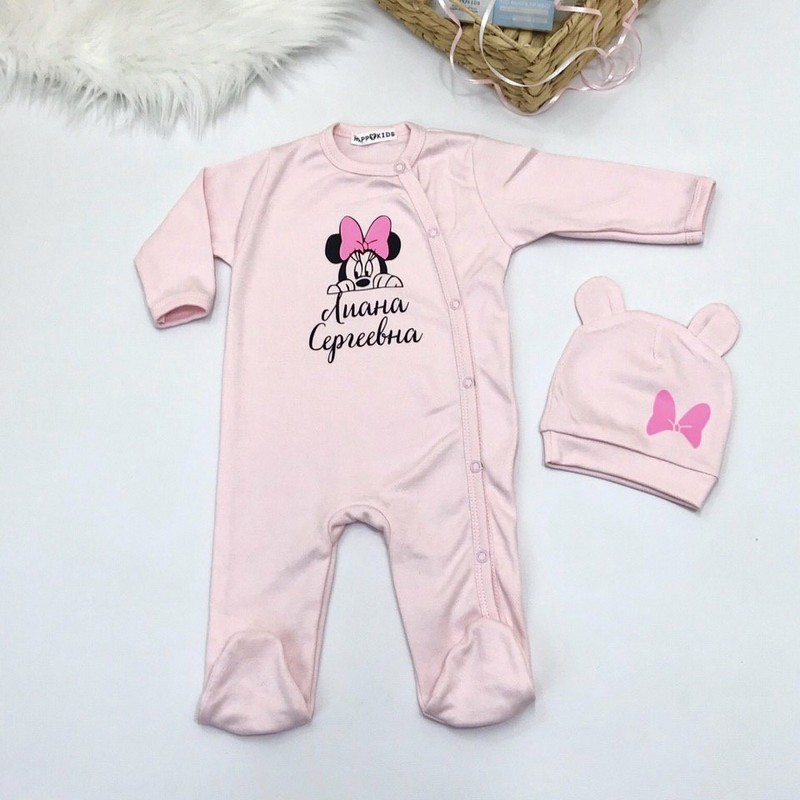 Зручний оригінальний сліп для новонародженого з іменем дитини та малюнком улюбленної Мінні маус - чудовий одяг для найменших крихіток. Чудово підходить в пологовий будинок, оригінальний подарунок новонародженій дитині.