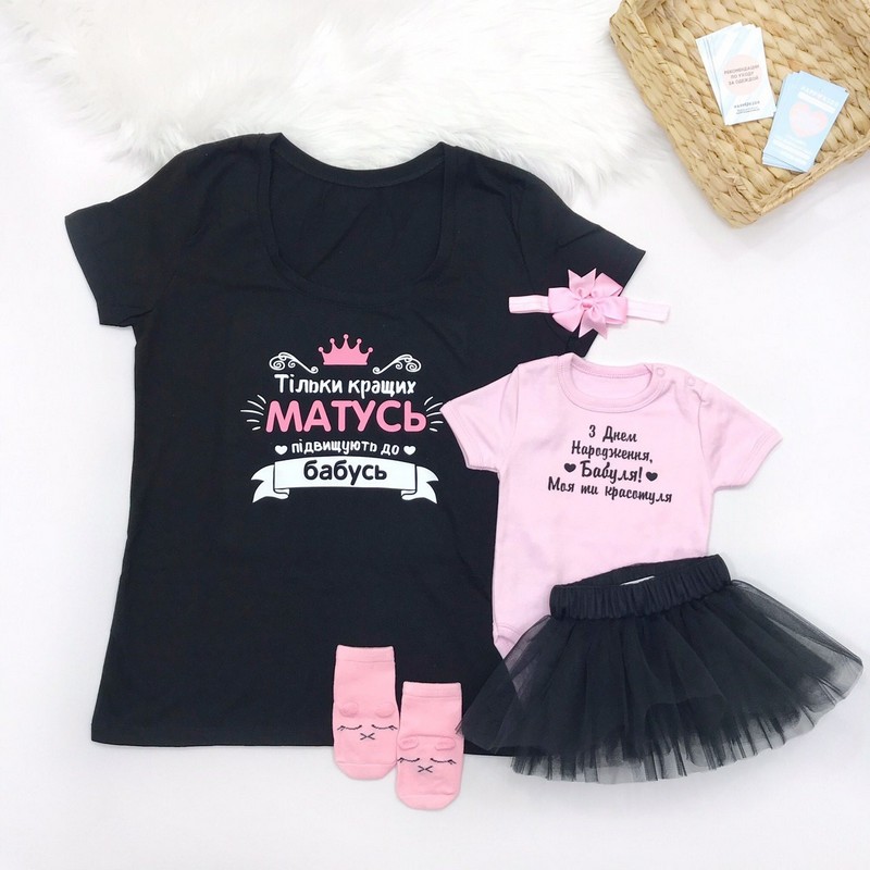 Базова однотонна жіноча футболка з оригінальним написом про бабусю - гарна ідея для подарунку бабусі, сюрприз для сімейної фотосесії, родинних свят.