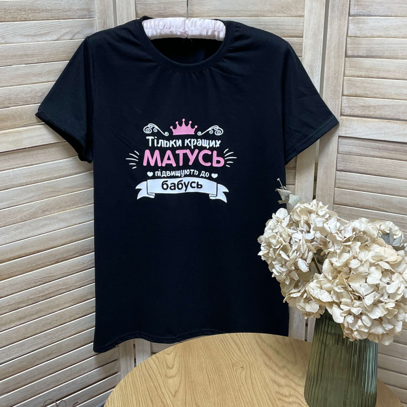 Жіноча базова футболка з написом на вибір купити в нашому інтернет-магазині одягу для всієї родини - "HappyKids".