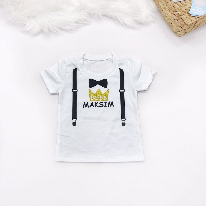 Оригінальна базова однотонна футболка для хлопчика з оригінальним написом босс, підійде як одяг на перший день народження хлопчик, створюється особисто для кожного клієнта. Якісна та зручна футболка для дітей з принтом - стане улюбленим одягом вашого малюка.