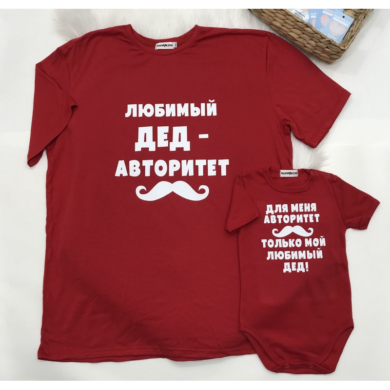 Базова однотонна чоловіча футболка з оригінальним написом - гарна ідея для подарунку дідусю, для сімейної фотосесії, родинних свят.
