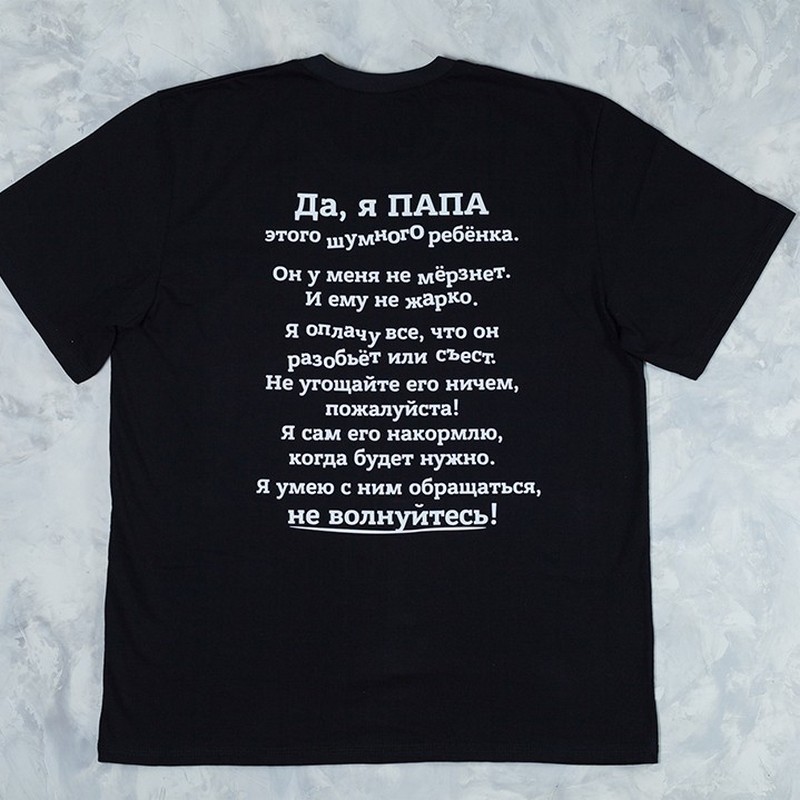 Базові футболки можна вибрати в потрібному розмірі, також можна змінити колір виробу. Якщо ви хочете нанести будь-який інший напис, повідомте нам і ми втілимо ваші бажання!