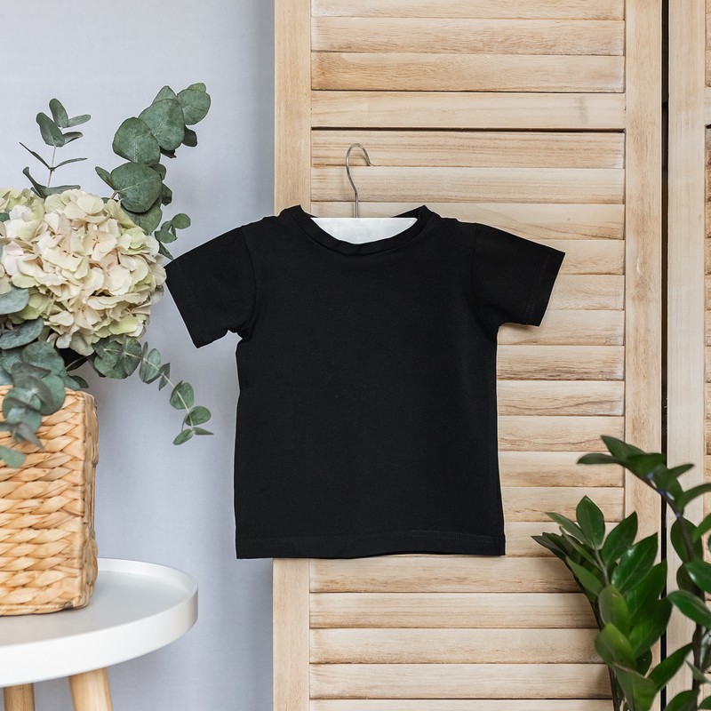 Чорна базова однотонна футболка для дівчинки і хлопчика чудовий вибір на кожен день, ідеально пасує для до будь-якого одягу. Зручний і якісний одяг для дівчинки на кожен день..