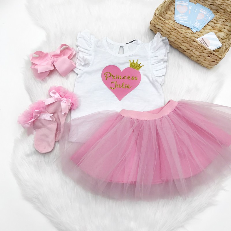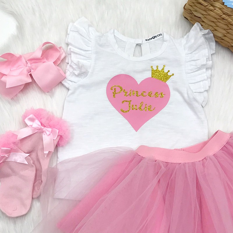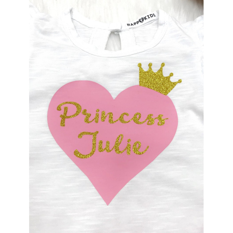 Футболка для дівчинки іменна "Princess" з серцем і короною гліттер