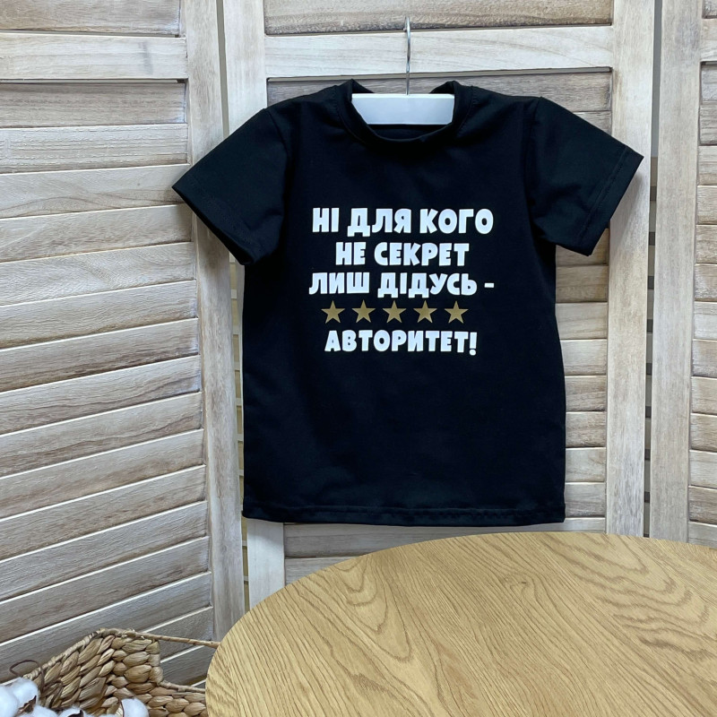 Футболка дитяча "Не для кого не секрет лиш дідусь авторитет" золоті зірочки