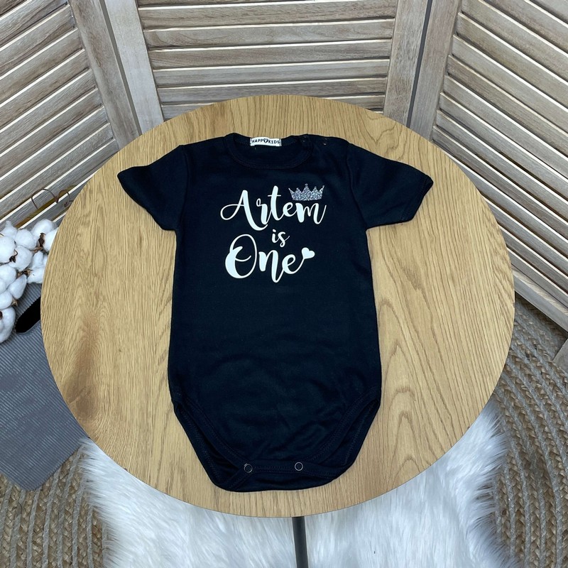 Якісний зручний однотонний боді з написом для малюка підійде для святкування і гарних пам'ятних фото для сімейної фотосесії.