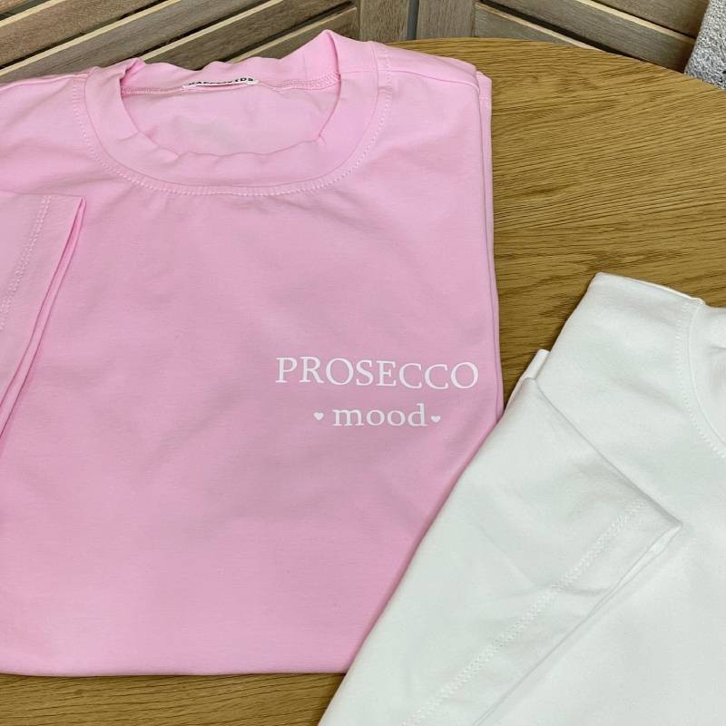 Футболка оверсайз рожева з написом "Prosecco mood"
