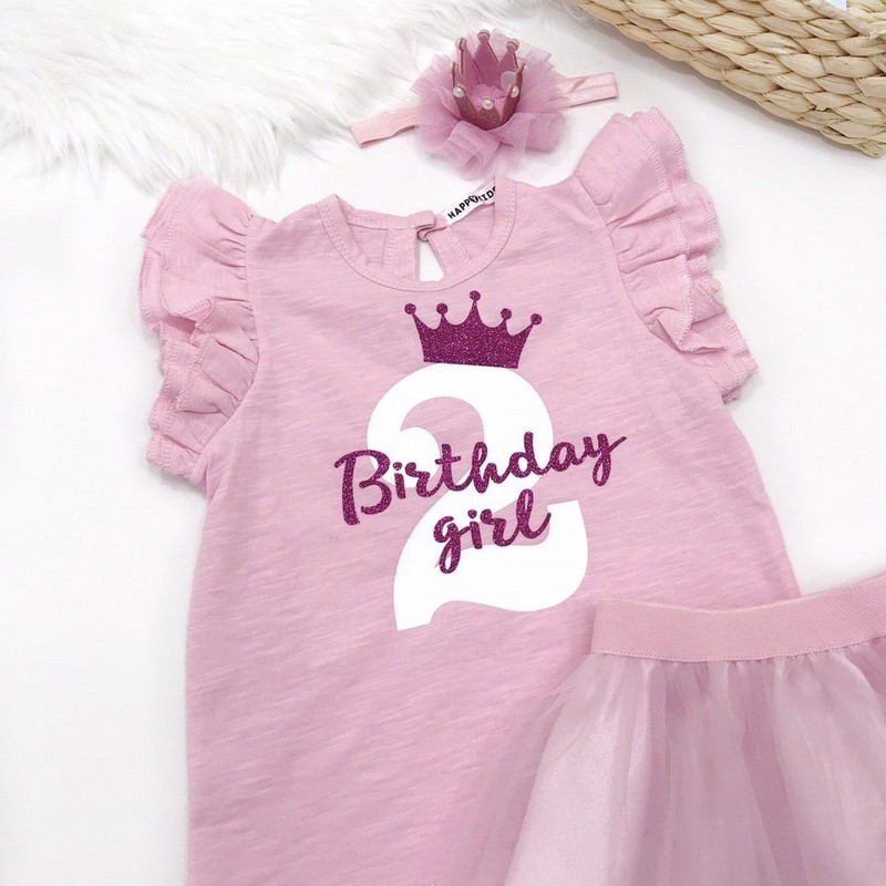 Оригінальна базова однотонна футболка для дівчинки з крильцями і написом на день народження зробить стильним іменинницю, ідеально пасує для свята дня народження і домашньої фотосесії.