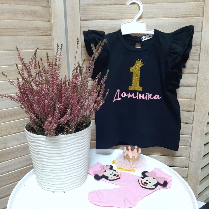 Футболка з крильцями на день народження іменна з цифрою гліттер
